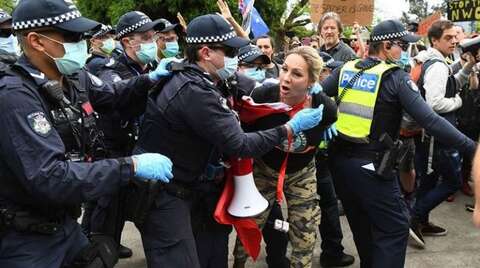 اشتبكت الشرطة الأسترالية مع مئات المحتجين الرافضين للعزل العام في مدينتي ملبورن وسيدني، السبت، فيما أعلن المسؤولون تسجيل أكبر زيادة يومية في إصابات كوفيد-19.