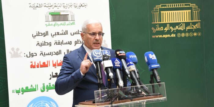 وخلال حفل إطلاق المجلس للنسخة الأولى من المسابقة الوطنية لأحسن الأعمال المدرسية حول موضوع “الجزائر والقضايا العادلة “، وذلك تحت شعار “العدل أساس ضمان حقوق الشعوب”، بحضور كبار المسؤولين في الدولة، أوضح بوغالي بأن جيل الاستقلال متشبع بالروح الوطنية، لا نساوم في دم الشهيد وشرفه لافتا إلى أن رئيس الجمهورية، السيد عبد المجيد تبون، يقوم بعمل جبار بحسّه الوطني ومواقفه الشجاعة، التي يفتخر بها كل أحرار العالم. وأضاف قائلا: الجزائر لطالما دافعت عن القضايا العادلة في العالم وعن المساواة في تطبيق القانون الدولي بعيدا عن ازدواجية المعايير، ستظل صامدة في مواجهة كل المحاولات الرامية إلى النيل من قرارها المستقل ورافضة لأي تدخل في شؤونها الداخلية. وفي سياق آخر، أشاد رئيس المجلس بمبادرة رئيس الجمهورية بإطلاق حوار وطني شامل والتي تهدف، حسبه، إلى توسيع الاستشارة بشأن المشاريع التمهيدية للنصوص القانونية التي تؤسس للإصلاح المؤسّساتي وتعزيزه بمقاربة واقعية وشاملة توفّر الظروف المثلى لخدمة المواطن وتقوية اللحمة الوطنية ورفع منسوب المناعة، تعزيزا للسيادة واستقلالية القرار الوطني. وفي الشأن الدولي لم يفوت بوغالي، الفرصة للترحيب باتفاق وقف إطلاق النار في قطاع غزة، معتبرا إياه خطوة أولى نحو إنهاء معاناة الشعب الفلسطيني الشقيق وبارقة أمل لتحقيق الاستقرار في المنطقة، مجدّدا التأكيد على أن موقف الجزائر الداعي إلى حل شامل وعادل يضمن للفلسطينيين نيل حقوقهم الكاملة على أرضهم وفي مقدمتها إقامة دولتهم المستقلة وعاصمتها القدس الشريف. من جانبه، نوّه وزير التربية الوطنية محمد صغير سعداوي، بالاهتمام الذي يوليه المجلس الشعبي الوطني للمنظومة التربوية، داعيا إلى مزيد من التشاركية والعمل من أجل الوصول بالمدرسة الجزائرية إلى المستوى المنشود، معتبرا بأن هذه المسابقة تعد من بين روافد التربية التكاملية وتعبر عن وحدة التصور بين هيئات ومؤسّسات الدولة في التكفل الأمثل بالأجيال الصاعدة وإتاحة فرصة انخراطهم في مواقف الجزائر الثابتة تجاه القضايا العادلة في العالم والمساهمة في الدفاع عنها.