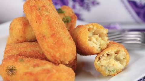- تمرر أصابع البطاطا في الدقيق، أصفر البيض ثم البقسماط.