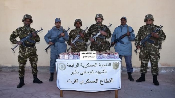 وتم توقيف 6 أشخاص آخرين وضبط مسدس 1 رشاش من نوع كلاشنيكوف و4 بنادق صيد ومسدس 1 آلي و70540 لتر من الوقود. إضافة إلى 65 قنطار من مادة التبغ 14 طن من المواد الغذائية الموجهة للتهريب والمضاربة وهذا خلال عمليات متفرقة.