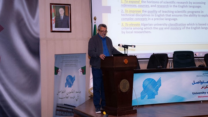 وشدّد يحي جعفري، في كلمته الافتتاحية بالمناسبة، على أهمية إدخال اللغة الإنجليزية في الممارسات البيداغوجية والعلمية داخل مؤسسات التعليم العالي في الجزائر، وذلك وفق المنهج الذي أقرته الوزارة الوصية وتنفيذا لتوجيهات السيد وزير التعليم العالي والبحث العلمي، البروفيسور كمال بداري. وفي ذات السياق، أكد مدير الجامعة لممثلي المؤسسات الحاضرين عن جودة التكوين الذي سيشرف عليه أساتذة بارزون من الجامعات الجزائرية، مما يتماشى مع المستجدات التي أطلقتها الوزارة بهدف إبراز تعزيز التكوين داخل المؤسسات الجامعية الجزائرية والرفع من حضورها الفاعل على الساحة الأكاديمية الدولية ناهيك عما توفره اللغة الإنجليزية من إمكانيات على المستوى الابتكار والإبداع وثقافة المقاولة كوسائل لتعزيز الدور الاقتصادي للجامعة. وقد صُمّم هذا التكوين من قبل طرف الخبراء بحيث يتكون فريق من الأساتذة ينتمون إلى عدة مؤسسات جامعية، بهدف الاستجابة لخارطة الطريق التي وضعتها السلطات العمومية لإدخال اللغة الإنجليزية في عمليتي التعلم والتعليم كما يتولى فريق من الإداريين ذوي الخبرة في التعليم عن بعد من متابعة ومرافقة المسجلين لهذه الدورة. للإشارة، لقد تم تسجيل 2500 أستاذ من 15مؤسسة جامعية (جامعات ومدارس عليا) في كل من الجزائر ووهران، وسيكون تكوينهم بنمط هجين (حضوري وعن بُعد). ويتيح هذا التكوين للأساتذة، اكتساب مهارات استخدام اللغة الإنجليزية، والاستفادة من تخصصات محددة في السنة الثالثة من مسار الليسانس، حيث سيكون عليهم الاختيار بين عدة مجالات مثل الاقتصاد، القانون، الطب الصيدلي وغيرها، وهذا بهدف تمكين الأساتذة الجامعيين من التكيف مع استخدام اللغة الإنجليزية في التدريس والبحث. وتهدف هذه التخصصات، إلى تمكين الأساتذة الباحثين الجزائريين من الوصول إلى منصات أوسع لاكتساب المعرفة ونشر أبحاثهم باللغة الإنجليزية، مما يعزز جهود المؤسسات الجامعية الجزائرية، ويرفع من تصنيفها الدولي بفضل جودة الإدارة البيداغوجية والعلمية. ويأتي هذا التكوين المخصص للأساتذة مكمّلاً للتكوين في اللغة الإنجليزية التقنية الذي تتكفل به جامعة التكوين المتواصل والمفتوح للطلبة، والذي لاقى نجاحًا كبيرًا خاصة لدى الطلبة الجدد وحتى متخرجين قدامى، حيث سجلت الجامعة منذ بداية التكوين للموسم الجامعي 2021-2022 انضمام حوالي 1400 أستاذ جامعي بصفة فردية في مختلف التخصصات منهم ما يقارب 1000 أستاذ في اللغة الإنجليزية وينتظر تخرجهم هذا الموسم. للإشارة، شهد حفل إطلاق التكوين الرسمي حضور عدد من رؤساء المؤسسات وممثليهم، مثل رئيس جامعة الجزائر 3، الأستاذ خالد رواسكي، ومديرة المدرسة العليا للهندسة المعمارية الأستاذة كهينة جيار، ومديرة المدرسة الوطنية للعلوم البيطرية، الأستاذة سونيا بسالم، إلى جانب ممثلي معظم المؤسسات الأخرى، إضافة إلى فواعل من أسرة جامعة التكوين المتواصل. اللقاء، كان فرصة للحضور للاستماع إلى مداخلة افتتاحية للبروفيسور بوهانية بشير، حول التخصص والذي عرج حول أهمية تعلم الإنجليزية والتعليم بها في الوسط الجامعي وما ينبغي التقيد به للنجاح في هذا التكوين، كما تابع الحضور عرضا من الأستاذة خليدة بن سيد أحمد، حول الأرضية التعليمية وأهم وظائفها وطريقة العمل عليها والجديد الذي تم إضافته إليها لهذه السنة، وذلك مناصفة مع أحد طلبتها للسنة الثالثة من مركز بوزريعة.