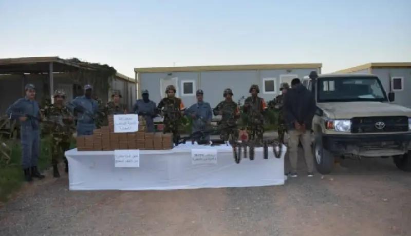 تمكن أعوان الفرقة الجهوية لمكافحة التهريب بإيليزي، بالتنسيق مع أفراد الجيش، حجز سلاح رشاش من نوع PKFM، و993 طلقة حية،و6 مخازن لسلاح رشاش، و198 كغ كيف معالج .