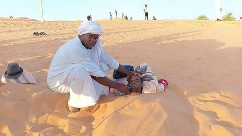 ويحضر مع ذلك الشخص مرافق يتولى تزويده بمياه الشرب أو العصائر لإطفاء نار العطش، حيث يظل مدفونا بالرمال لمدة ساعتين على الأقل، كما يروي أحد العارفين بأسرار هذا العلاج.