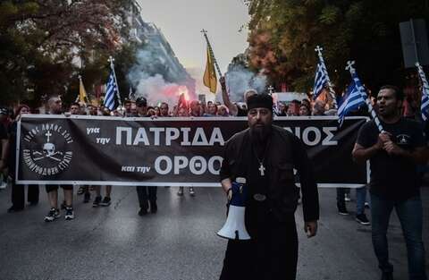 وعقب ذلك قام هؤلاء المحتجون بترديد هتافات مناهضة لتركيا وهم يحملون لافتات كتبوا عليها “هذا من أجل الوطن، والأمة، والمذهب الأرثوذوكسي”.