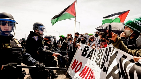 أغلق عدد من النشطاء التابعين لحركة فلسطين حرة والمحتجين على الحرب في قطاع غزة، الطريق السريع 101 المتجه جنوبا على جسر البوابة الذهبية في مدينة سان فرانسيسكو ، وفقا لإدارة الطوارئ في المدينة، الثلاثاء. وأوقف العشرات من المتظاهرين سياراتهم عند الساعة 7:30 صباحا، وأغلقوا جميع الممرات الجنوبية على امتداد الجسر، مطالبين الإدارة الأمريكية بالتوقف عن تسليح وتمويل إسرائيل في الحرب في غزة، حسبما أكد المنظمون.