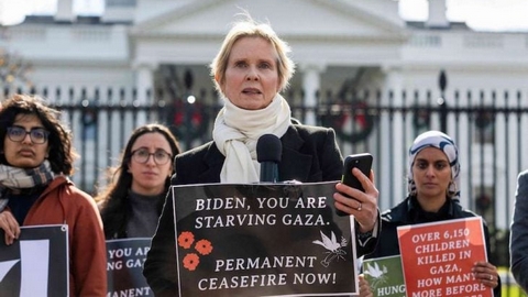 نظمت الممثلة الأمريكية الشهيرة، سينثيا نيكسون، إضرابًا عن الطعام أمام البيت الأبيض، بالتعاون مع مجموعة من الناشطين، للمطالبة بفرض وقف دائم لإطلاق النار في غزة.