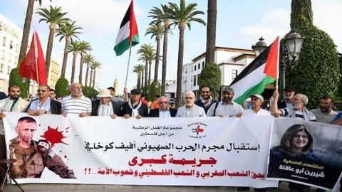 تظاهر الحقوقيين بالمغرب أمام مبنى البرلمان في العاصمة الرباط، احتجاجاً على زيارة رئيس أركان جيش الاحتلال الإسرائيلي أفيف كوخافي.