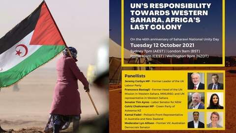 الندوة من تنظيم جمعية الصداقة مع الشعب الصحراوي باستراليا وستجرى عبر تقنية التواصل المرئي تحت عنوان: مسؤولية الأمم المتحدة تجاه الصحراء الغربية ، آخر مستعمرة في إفريقيا، وذلك يوم 12 اكتوبر الداخل .