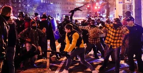 شرطة نيويورك تدخلت ومنعت مؤيدي ترامب من رفع اللافتة، وقامت بتوقيف عدد من الطرفين بعد تبادلهم الاشتباكات.