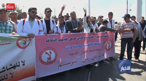 ودعا “الأساتذة الذين فرض عليهم التعاقد”، كما يسمون أنفسهم، إلى إضراب عن العمل الخميس، موازاة مع محاكمة بعض زملائهم الذين اعتقلوا في السادس والسابع من شهر أبريل أثناء احتجاجهم بالرباط، ووجهت لهم السلطات المغربية تهمة “التجمهر غير المرخص وخرق حالة الطوارئ الصحية”.