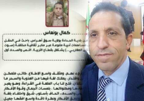 بونعاس كمال يشتغل في قطاع التربية الوطنية كأستاذ للعلوم الاجتماعية.. لامست النصوص مشاعره، يعيش بجمال الحرف .. مولع بالقراءة منذ الطفولة، قصص بائعة الكبريت والحسناء النائمة .. في الثانوي أنهيت حديث الأربعاء والأيام لطه وحمار الحكيم والنظرات والعبرات للمنفلوطي .. دخلت عالم الكتابة شابا يافعا من خلال كتابة الخواطر في جريدة الشرق الجزائري وكنت أرسلها بالهاتف الثابت لرداءة خطي وجرأة ما أكتب، وكنت أذيلها باسم مستعار أمير الرومانسية بحكم عادات وتقاليد قريتي المحافظة.