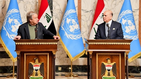 وخلال لقائه الأمين العام للأمم المتحدة أنطونيو غوتيريش، بحث الجانبان العلاقات الثنائية بين العراق والمنظمة الدولية، وتم استعراض آفاق التعاون في ملفات النازحين والدور الدولي المطلوب، ومواجهة تحديات المناخ والحاجة للمساعدة الدولية في هذا الملف، وكذلك جهود العراق في ترسيخ ثقافة حقوق الإنسان وتعزيز التنمية المستدامة، ودوره الريادي في خفض التوترات بالمنطقة وضمان استقرارها.