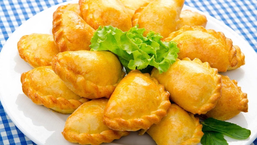 نحل عجينة المورقة ونقطعها إلى دوائر ونضع 1 ملعقة طعام من الحشوة في طرف كل دائرة ثم نغلقها لنشكل نصف دائرة ثم نضغط ونطوي الأطراف لإغلاقها.