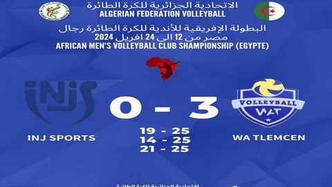 تغلب ممثل الكرة الطائرة الجزائرية وداد تلمسان في مباراته الأخيرة للدور الأول ضد ابيدجان انجس الإيفواري بنتيجة (3-0)، لحساب الجولة الخامسة والأخيرة من منافسات المجموعة الثانية ضمن البطولة الإفريقية للكرة الطائرة المقامة حاليا بالقاهرة.