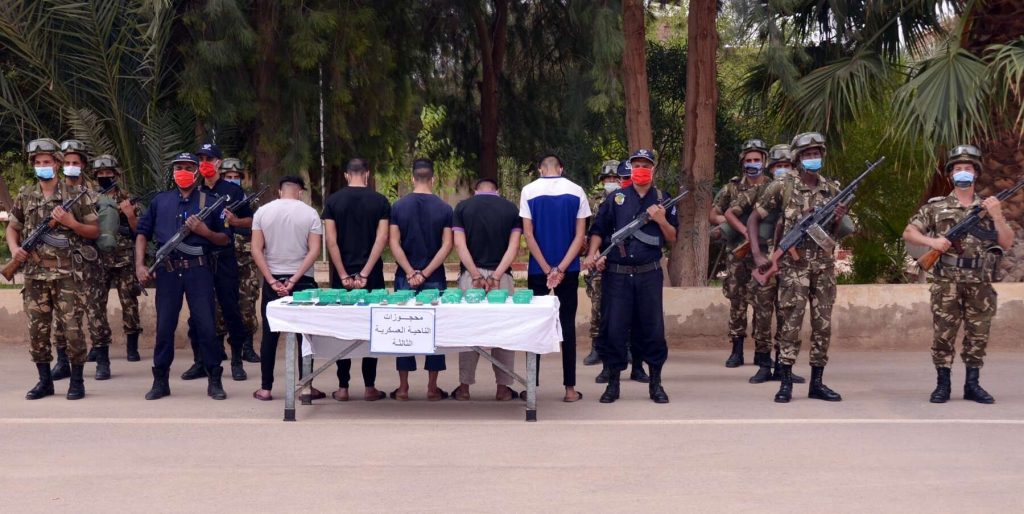 وأوضح البيان, أنه خلال الفترة الممتدة من 02 إلى 08 جوان 2021, أوقفت مفارز للجيش الوطني الشعبي ومصالح الدرك الوطني وحراس الحدود بإقليمي الناحيتين العسكريتين الثانية والثالثة، (16) تاجر مخدرات وضبطت (09) قناطير و(09) كيلوغرام من الكيف المعالج حاولت المجموعات الإجرامية إدخالها عبر الحدود مع المغرب، في حين تم توقيف (39) تاجر مخدرات وحجز (5,55) كيلوغرام من الكيف المعالج و(28640) قرص مهلوس خلال عمليات مختلفة عبر نواحي عسكرية أخرى.