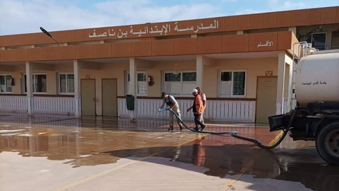 وشمل التنظيف حجرات التدريس ودور المياه والإدارة بكل المدارس الابتدائية، وتنظيف المطاعم ورفع الأثاث القديم بهدف تجهيز المدارس بأثاث جديد، حيث تم تجديد السبورات وتجهيز الأقسام بـ 27 مكتب أستاذ و1670 طاولة وكرسي و51 خزانة.