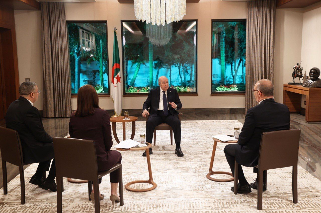 وفي الساحل, قال الرئيس تبون أن الماليين فهموا أن الجزائر بلد شقيق وليس جارا فقط, لم يحاول أبدا فرض أّي شيء عليهم, ونفس الشيء بالنسبة للنيجر, غير أن طرفا ثالثا (لم يسمه) يحاول التأثير من خلال نشر الأخبار الكاذبة. وبخصوص اتفاق السلم والمصالحة في مالي المنبثق عن مسار الجزائر, قال رئيس الجمهورية أن الأشقاء الماليين أحرار في استئنافه والعمل به, مشددا على أن الاتفاق لم يوجد للتدخل في الشؤون الداخلية لماليكما أكد رئيس الجمهورية أن الجزائر تلعب دورا محوريا في التقارب بين دول المغرب العربي, حيث تجري مشاورات يومية مع تونس و موريتانيا وظرفية مع ليبيا وتأسف الرئيس تبون من الفراغ الذي يعرفه المغرب العربي حيث تتصرف دول هذا الفضاء بشكل فردي, في الوقت الذي أسست فيه دول الساحل مؤخرا تكتلا خاصا بها يجب التعامل معه, وهو ما قامت به كذلك من قبل دول منطقة غرب إفريقيا. وشدد رئيس الجمهورية، على أن الجزائر تعمل قدر المستطاع حتى لا تقصي أي طرف، حيث يبقى هدفها الأسمى هو لمّ الشمل في فضاء بحاجة الى التأطير مجددا مذكرا في هذا السياق بالاتفاقية التي تم توقيعها بين الجزائر وتونس وليبيا بخصوص المياه الجوفية الألبية. وتطرق رئيس الجمهورية، إلى علاقات الجزائر بعدد من الدول من بينها إسبانيا وألمانيا, حيث أكد أن العلاقات مع مدريد تعود تدريجيا إلى حالتها الطبيعية بعد فترة فتور بين الطرفين. أما العلاقات مع ألمانيا فقال الرئيس إنها هي الأخرى مميزة والألمان كانوا على الدوام أصدقاء, وأكد على أنه ليس للجزائر أي مشكل مع أي دولة أوروبية. كما أوضح رئيس الجمهورية بخصوص علاقات الجزائر مع الولايات المتحدة بأنها تتحسن يوميا وقد وقعنا اتفاقيات عسكرية مع واشنطن, موضحا في السياق على أن الاتفاقيات الأخيرة الموقعة بين البلدين لن تؤثر على علاقات الصداقة مع روسيا والصين وأيضا مع دول أخرى مثل الهند, وأن الجزائر ملتزمة بموقف عدم الانحياز.