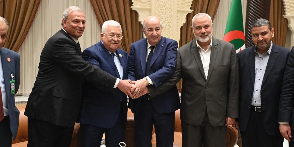 جمع رئيس الجمهورية، السيد عبد المجيد تبون، بالمركز الدولي للمؤتمرات “عبد اللطيف رحال” بالجزائر العاصمة، رئيس دولة فلسطين، السيد محمود عباس ورئيس المكتب السياسي لحركة حماس الفلسطينية، السيد إسماعيل هنية، في لقاء تاريخي بعد فتور دام سنوات. اللقاء جمع أيضا، ممثلين عن السلطة الفلسطينية وحركة حماس. ومن جهة أخرى، وقّع الرئيس تبون ورئيس دولة فلسطين وثيقة تنص على تسمية شارع برام الله بإسم الجزائر. ولقيت هذه المبادرة التي قام بهدا الرئيس تبون ردود إشادة من طرف وسائل إعلام عالمية وشخصيات داخلية وخارجية، تؤكد على الدور الريادي للجزائر وحنكة الدبلوماسية الجزائرية التي أثبتت مرة أخرى قدرتها على إدارة الملفات المعهدة. ويؤكد هذا اللقاء، إمكانية تجاوز ملف الانقسام الفلسطيني الداخلي الذي طال عمره، وإمكانية تحريك هذا الملف بعد فشل العديد من العواصم العربية والأوربية في زحزحة ملفاته المُجمدة والشائكة. وبعد ساعات من نشر صور وتفاصيل اللقاء التاريخي، حتى ضجت وسائل الإعلام ومواقع التواصل الاجتماعي، بالإشادة بدور الجزائر. وبدأت التساؤلات تُطرح حول أهمية هذا اللقاء، ونجاح الرئيس تبون شخصيًا في تقريب وجهات نظر الفرقاء الفلسطينيين.
