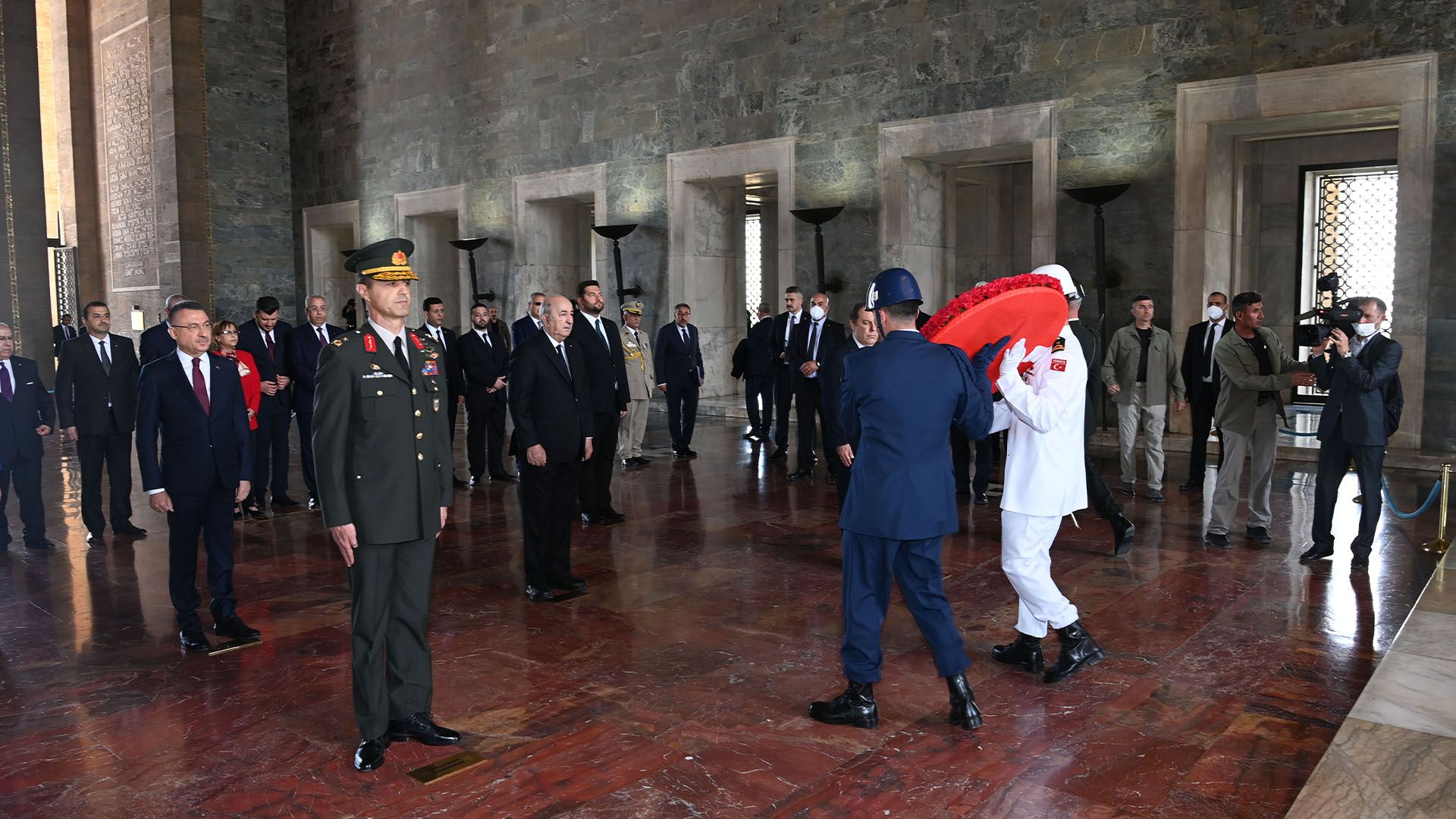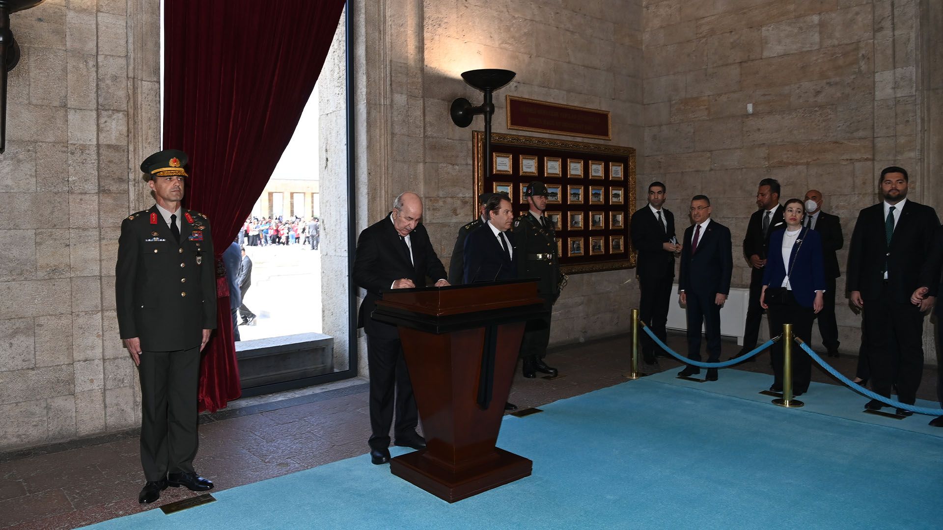 وكان في استقبال الرئيس تبون والوفد الوزاري المرافق له لدى وصوله إلى الضريح, نائب الرئيس التركي, فؤاد أوكتاي, الذي رافقه طيلة هذه الزيارة.