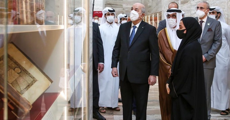 كما قام الرئيس تبون بزيارة مكتبة قطر، واستمع لشروحات حول المخطوطات والمؤلفات التي تحتويها المكتبة.