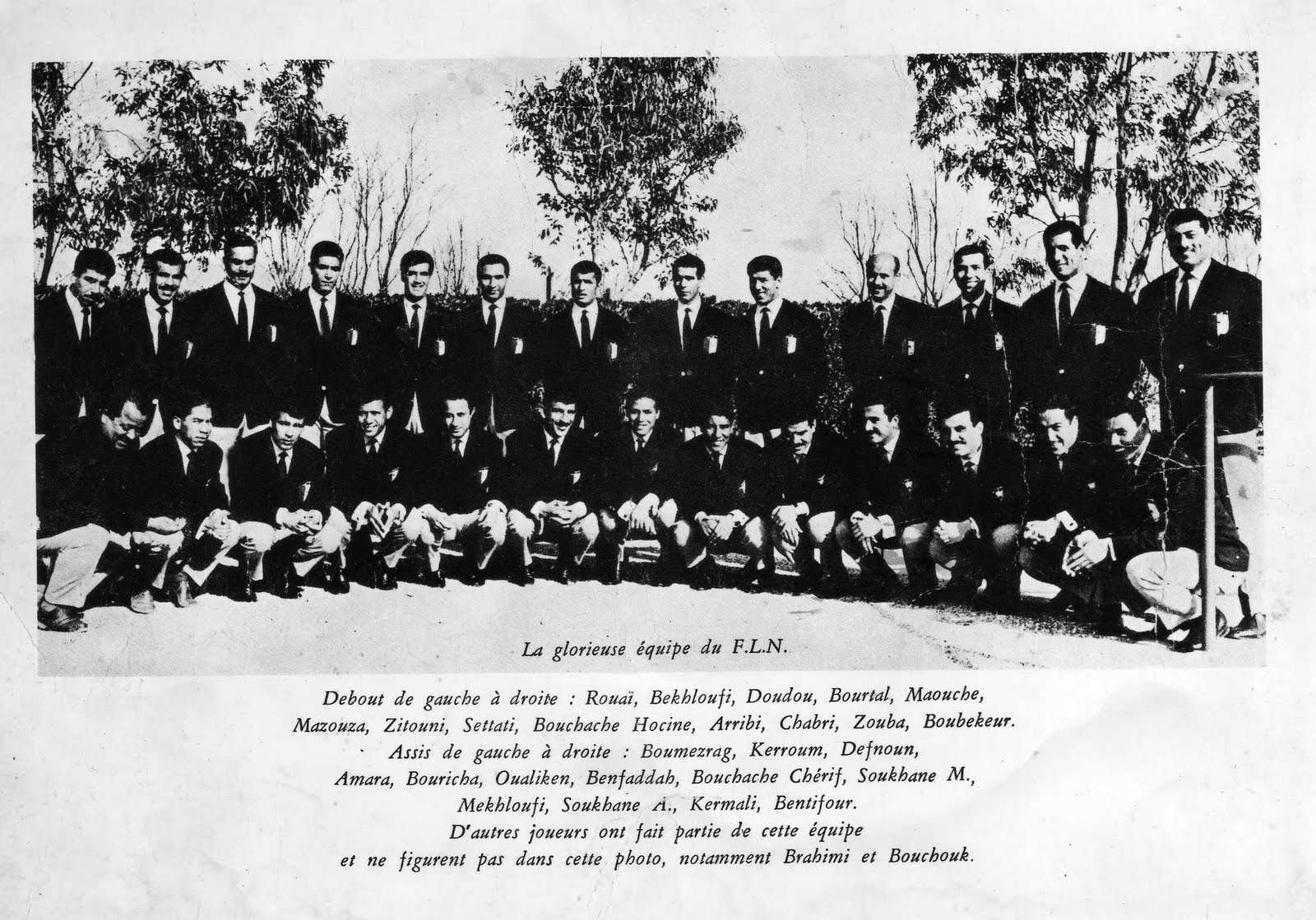 ولا ينكر أحد ماذا فعل الفريق التاريخي لجبهة التحرير الوطني لكرة القدم مباشرة بعد تأسيسه ربيع العام 1958، وتشكل من نجوم كروية تخلت عن مكاسب مغرية وفضلت تلبية نداء الوطن، على غرار مخلوفي وزيتوني وكرمالي ولعريبي وعمارة والقائمة طويلة، ما جعل هذا الفريق يحول الجلد المنفوخ إلى أداة هامة وحاسمة في خدمة الثورة، حدث ذلك بعدما طاف 32 لاعبا جزائريا العالم من 1958 إلى 1962، باسم جبهة التحرير الوطني، للتعريف بقضية الشعب الجزائري المكافح من أجل استقلاله، أما صاحب فكرة تأسيس الفريق فهو محمد بومزراق، فيما يعد المسؤول السياسي محمد علام ومسؤول العتاد سلامي زامري.
