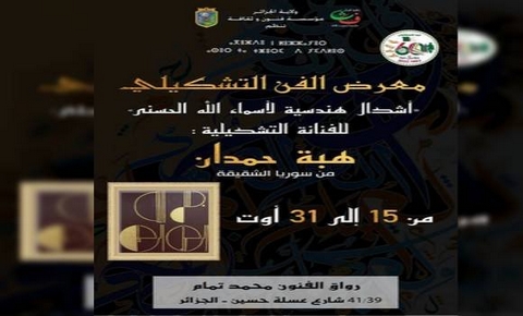 تقدم الفنانة التشكيلية السورية، هبة حمدان، قرابة 20 لوحة خط عربي تنتمي إلى الحروفية الحديثة في معرضها المقام حاليا برواق الفنون “محمد تمام” بالجزائر العاصمة، وهي أعمال مبتكرة شملت في أغلبها تشكيل هندسي لأسماء الله الحسنى برؤية جمالية وتقنية معاصرة.