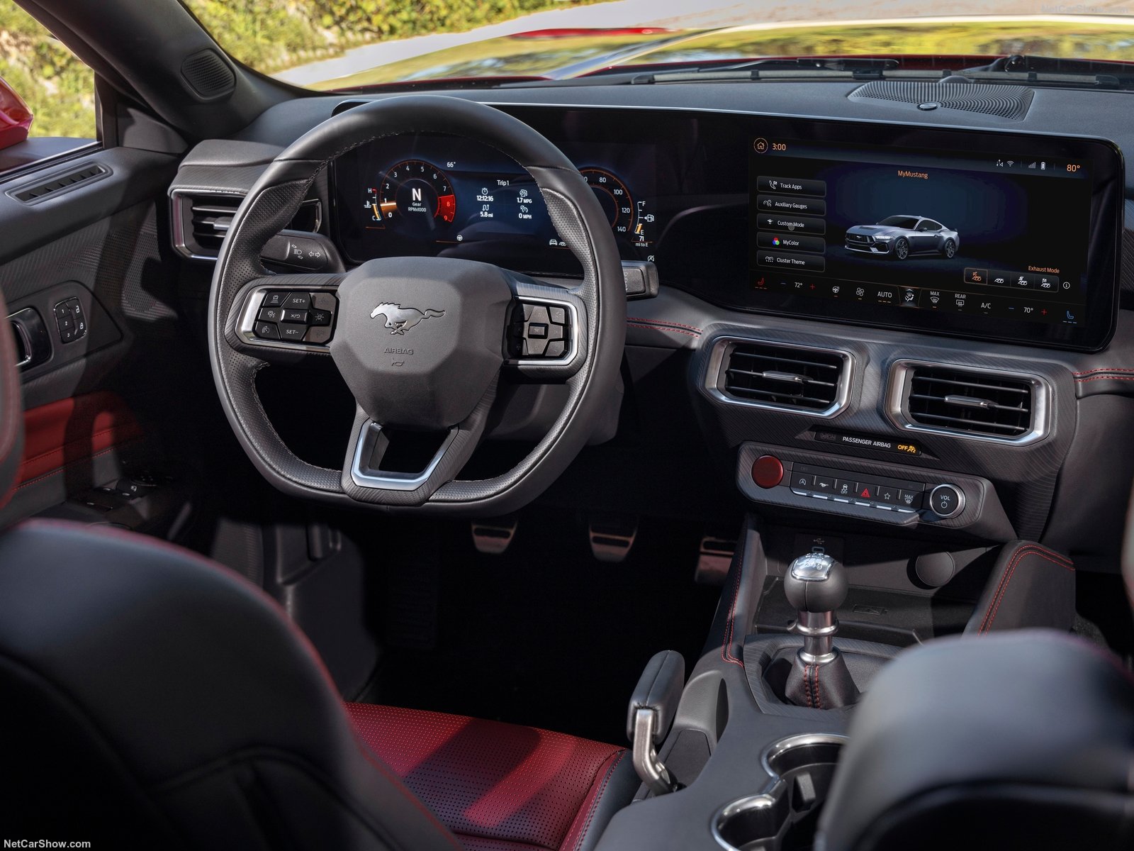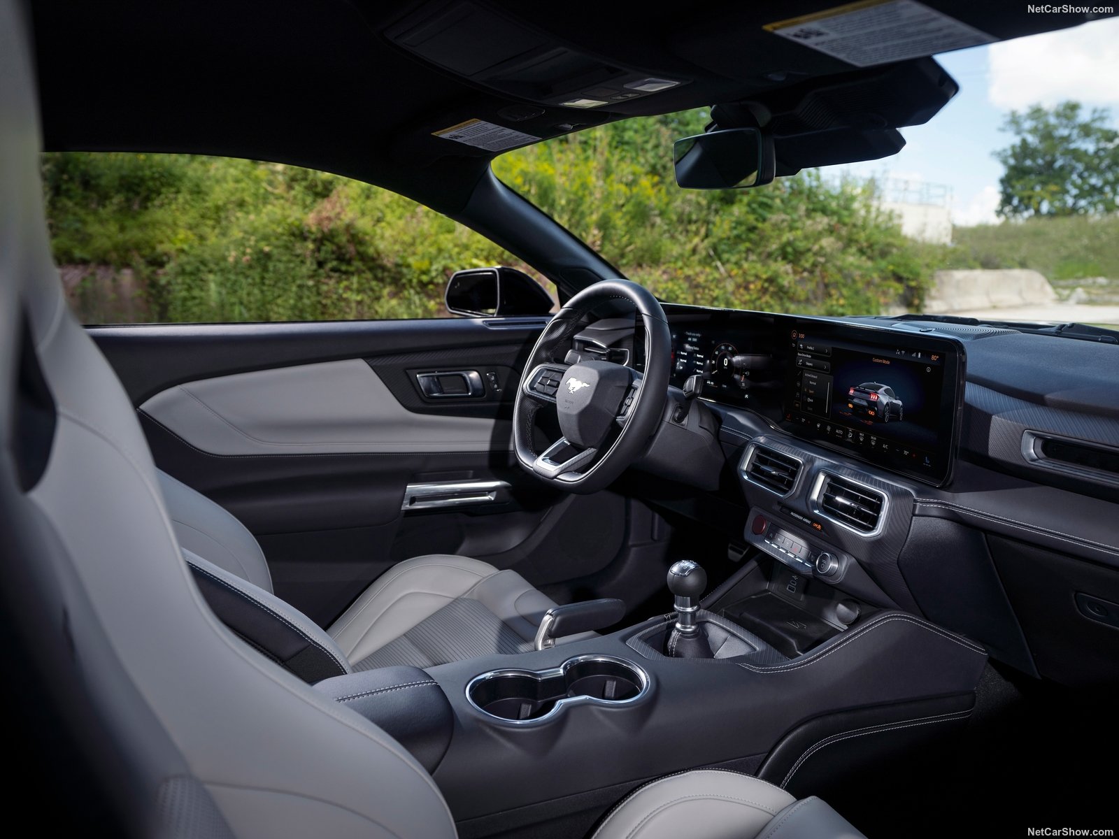 في الداخل تحصل السيارة على تصميم عصري يخفف قليلاً من حدة التصميم الرياضي مع شاشة وسطية مرتفعة بقياس 13.2 إنش بنظام SYNC 4 يدعم أمازون أليكسا، ويتوفر للسائق لوحة عدادات رقمية قابلة للتخصيص، وتحصل السيارة على كسوة من الجلد لفئة GT وتوفر نطريزات رياضية لكافية الفئات.