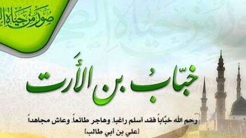 وهو الصحابيُ خباب بن الأَرَتّ بن جندلة التميمي، ويُسمى بالخزاعيِّ أبو عبد الله، كانَ من سبايا الجاهليةِ، وتم بيعهُ في مكة، فهو مولى أمُّ أنمارٍ الخزاعية، وهو من أوائلِ من أسلَّموا، تعلمَ صناعةَ السيوفِ وأتقَنَها، حتى اشتُهِرَ ببراعتهِ في ذلك، وأصبح النّاس يُقبِلُونَ عليهِ من كل مكانٍ ليشتروا منهُ السيوف، وعُرف بالصدقِ والأمانةِ والحكمةِ، وحكمتهُ هي التي جعلتهُ يتفكر بما وصلت له الناس من ضياعٍ وتخبطٍ في معيشتهم، وما إن بلغَ خباب الدين القويم، الذي جاءَ به رسول الله، ورأى أنَّ هذا الدين هو ما سَيُخرِجُ النّاس من الظُلماتِ التي يعيشونها، إلى النورِ المُبين، حتى سارَعَ إلى الدخولِ بالإسلام، فكانَ سادسَ من آمن، وكان قد أسلم قبل دخول رسول الله دارَ الأرقم. وأولُ ما يُذكر في سيرة الصحابي خباب بن الأرت، هو جُرأتُهُ في دين الله، فقد أبلغَ النّاس بإسلامهِ، ولمّا بَلغَ خبرُ إسلامهِ أمُّ أنمار، أخبرت أخاها وهو سباع بن عبد العزى، فلمّا سألَهُ عن ذلك، لم يُنكر خباب، وأخبرهُ أنهُ تَبِعَ ما جاَء بهِ رسول الله، فبدأَ بضربهِ هو ومن معهُ، حتى سقطَ والدماءُ تقطرُ منه، ومن هنا بدأَ ثباتهُ وصبرهِ، وبدأت قُريش محاوَلَاتِها لِيَردوه عن دينهِ، فَتَلقى من العذابِ أكثرهُ، وَقدموا لهُ العروضَ المغرية، التي ترفعُ من شأنهِ، لكنّه، تمسك بدينهِ، وبعد زمنٍ منَّ اللهُ عليهِ بالغنى، بعدَ الفقرِ والحاجة، فوضع مالهُ في مكانٍ يتيحُ به للفقراءِ والمساكينَ، أخذَ المال وهذا من شدةِ خشيتهِ من الله تعالى. توفي وهو يبلغُ من العمر73 عامًا، وتوفي في الكوفة سنة 37، وصلّى عليه علي بن أبي طالب رضي الله عنه بعدَ واقعةِ صفين، وقال حين وفاتهِ”رحم الله خبابًا، فلقد أسلم راغبًا، وهاجر طائعًا، وعاش مجاهدًا”. وكانت وصيةُ خباب هي أن يُدفن في وقت الظهيرة، وكانَ أول من دُفن وقت الظهيرة، وبعدها أصبحَ النّاس يدفنون موتاهم وقتَ الظهر.