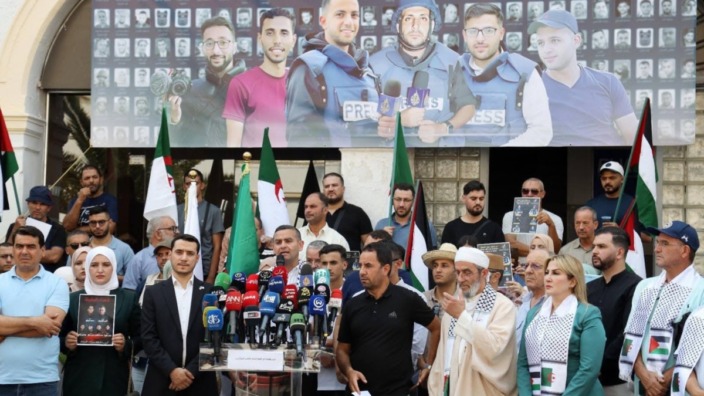 احتضنت دار الصحافة “طاهر جاووت” بالجزائر العاصمة، وقفةً قوية ومعبّرة نصرةً للإعلام الفلسطيني، وتنديدًا باغتيال الاحتلال الصهيوني لـ238 صحفيًا في غزة، في جريمة حرب مستمرة تهزّ الضمير الإنساني.