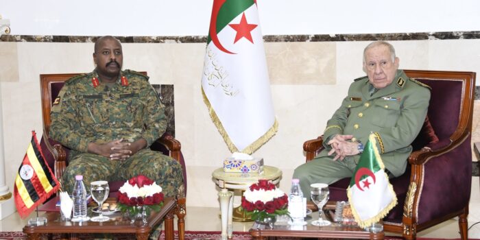 هذا وكان الفريق أول السعيد شنڨريحة، الوزير المنتدب لدى وزير الدفاع الوطني، رئيس أركان الجيش الوطني الشعبي، قد استقبل الثلاثاء 21 جانفي 2025، بمقر أركان الجيش الوطني الشعبي، الفريق أول موهـوزي كاينــيروغابا، رئيس قوات الدفاع الشعبية الأوغندية، الذي يقوم بزيارة عمل إلى الجزائر على رأس وفد عسكري رفيع المستوى اللقاء حضره كل من الأمين العام لوزارة الدفاع الوطني وقادة القوات ورؤساء الدوائر ومديرين مركزيين من أركان الجيش الوطني الشعبي ووزارة الدفاع الوطني، إلى جانب أعضاء الوفد الأوغندي الزائر. وخلال هذا اللقاء، استعرض الطرفان فرص التعاون العسكري الثنائي، وكذا سبل تطوير وتعزيز التنسيق في المسائل ذات الاهتمام المشترك، كما تناولا التحديات الأمنية التي يعرفها العالم عموما، وكذا القارة الإفريقية على وجه الخصوص، وتبادلا وجهات النظر حول مختلف القضايا الراهنة. بهذه المناسبة، ألقى الفريق أول كلمة رحب في مستهلها بالمسؤول الأوغندي، منوها بالمستوى الذي بلغته العلاقات الثنائية بين الجزائر وأوغندا، خلال السنوات القليلة الماضية قائلا “يسعدني، في البداية، أن أرحب بكم وبالوفد المرافق لكم، بمقر أركان الجيش الوطني الشعبي، بمناسبة هذه الزيارة، التي تشكل فرصة مواتية لنا للدفع قدما بتعاوننا العسكري المشترك، بما يخدم المصالح المشتركة لشعبينا الصديقين”، مضيفا: “كما أود، بهذه السانحة، أن أنوه بالمستوى الذي بلغته العلاقات الثنائية بين الجزائر وأوغندا، خلال السنوات القليلة الماضية، والذي تجسد من خلال تكثيف تبادل الزيارات بين البلدين”. في هذا الإطار، منحت الزيارة الرسمية، التي قام بها رئيس جمهورية أوغندا، يووري موسيفيني، إلى الجزائر، شهر مارس 2023، بدعوة من أخيه عبد المجيد تبون، رئيس الجمهورية، القائد الأعلى للقوات المسلحة، وزير الدفاع الوطني، دفعا قويا وديناميكية حقيقية لمسار علاقات التعاون بين بلدينا، لاسيما في مجال تعزيز التزامهما المشترك، للعمل من أجل دعم القضايا الإفريقية، وتحقيق السلم والأمن والتنمية في كامل ربوع القارة”. من جهته أشاد الفريق أول موهـوزي كاينـيروغابا، بحفاوة الاستقبال الذي حظي به والوفد المرافق له، وكذا بالإرادة القوية التي لمسها لدى الطرف الجزائري في تقوية علاقات التعاون والتشاور بين البلدين في المجالات ذات الاهتمام المشترك بما يسهم في تعزيز الأمن والاستقرار في القارة الإفريقية.