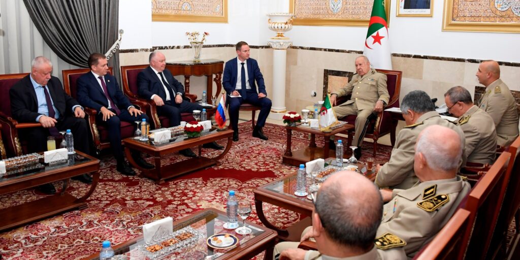 وأوضح نفس المصدر أنه في إطار برنامج التعاون العسكري والتقني الجزائري-الروسي, استقبل السيد الفريق أول السعيد شنقريحة, رئيس أركان الجيش الوطني الشعبي, هذا الأربعاء 11 سبتمبر 2024, بمقر أركان الجيش الوطني الشعبي, السيد ألكسندر ميخييف, المدير العام للشركة الروسية روزوبورون إكسبورت (Rosoboronexport) وقد حضر هذا الاستقبال –يضيف البيان– ألوية وعمداء من وزارة الدفاع الوطني وأركان الجيش الوطني الشعبي وكذا أعضاء الوفد الروسي.