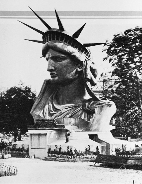 صمم النحّــات الفرنسي، فريدريك بارتولدي، نموذجـاً مُصغراً لتمثال السيـدة التي في الصــورة، في عهـد الخديـوي إسماعيل باشــا، وقام بعرضه على الخديوي إسماعيــل، ليتم وضعه على مدخل قناة السويس التي كان يتم افتتاحها في ذلك الوقت ، لكن إسماعيــل اعتذر عن قبول اقتراح التمثال الفرنســي، نظراً للتكاليف الباهظــة التي يتطلبها هذا المشــروع، خاصة بعــد تكاليــف حفــر القنـاة وافتتاحها لذلك، فقامت فرنســا بإهداء التمثــال إلى الولايات المتحدة الأمريكيـــة في ذكـرى احتفالها المئوي لإعلان استقلالها، بعد أن غيــر النحات شكل التمثال، وجعلـه بالشكــل