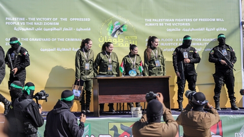 ووقع الصليب الأحمر على أوراق استلام المجندات الإسرائيليات من كتائب القسام في ميدان فلسطين. والمجندات التي تم تسليمهن في إطار صفقة “طوفان الأقصى”، هن: كارينا أرئيف، دانييل جلبوع، نعمة ليفي وليري إلباج.