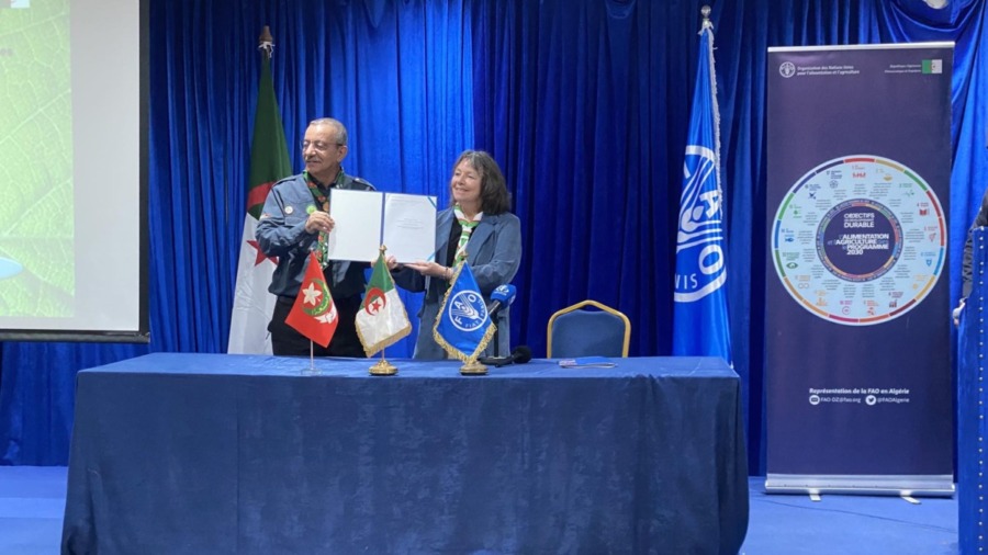 وقّعت الكشافة الإسلامية الجزائرية، الثلاثاء، اتفاقية شراكة مع منظمة الأغذية والزراعة للأمم المتحدة (الفاو) بالجزائر، تهدف إلى تكوين قادة الكشافة حول أهمية الثروة الغابية والموارد المائية في تحقيق التنمية المستدامة ومكافحة التغير المناخي.
