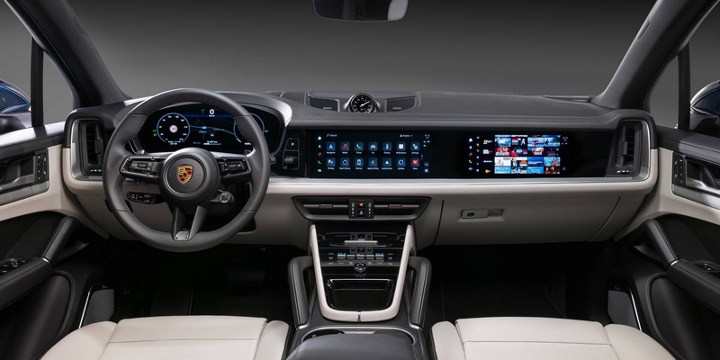 بورش تستبق الاحداث وتكشف عن التصميم الداخلي والفاخر لسيارتها الجديدة أيام قليلة قبل موعد الكشف الرسمي عن بورش كايين الكهربائية، وقد كشفت الشركة يمكن أن تحتوي السيارة إلى ما يصل لـ7 شاشات، والتي تشمل بشكل قياسي لوحة العدادات الرقمية قياس 12.6 إنش، إلى جانب شاشة النظام الترفيهي قياس 12.3 بوصة مع دعم الهواتف الذكي بنظام أندرويد أوتو وأبل كاربلاي. ويمكن الحصول على شاشة ثالثة للراكب تمكنه من المشاهدة والتصفح دون تشتيت السائق. وأضافت بورش أنها تعمل على دعم الأوامر الصوتية من مساعد أبل، سيري، ضمن سيارتها.