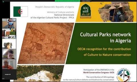 وأوضح ذات المصدر أن صالح أمقران قد عرض بتقنية التناظر المرئي عن بعد، تجربة الجزائر للحظائر الثقافية، في مساهمة الثقافة في المحافظة على الطبيعة عبر مداخلة بعنوان “شبكة الحظائر الثقافية في الجزائر (تدابير الحفظ الفعالة الأخرى القائمة على المناطق)، من أجل مساهمة الثقافة في الحفاظ على الطبيعة: مثال الحظيرة الثقافية بطاسيلي ناجر”.