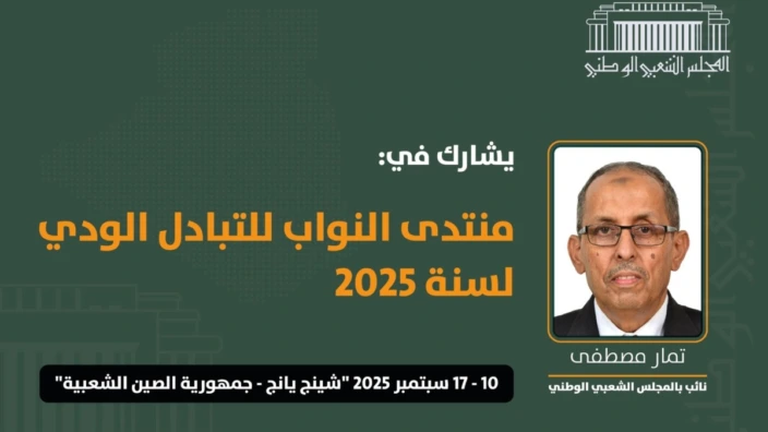 وأوضح نفس المصدر، أن المجلس الشعبي الوطني, ممثلا في النائب تمار مصطفى, معني بالمشاركة في أشغال “منتدى النواب للتبادل الودي لسنة 2025”, المقرر تنظيمه من 10 إلى 17 سبتمبر الجاري، بمدينة شينج يانج بجمهورية الصين الشعبية. وتنظم هذه التظاهرة, من قبل الجمعية الصينية للتبادل الودي مع الدول, كما تنعقد تحت شعار “بناء شراكات عالمية تعزز بشكل مشترك التنمية المستدامة المشتركة”, مثلما أشار إليه البيان.