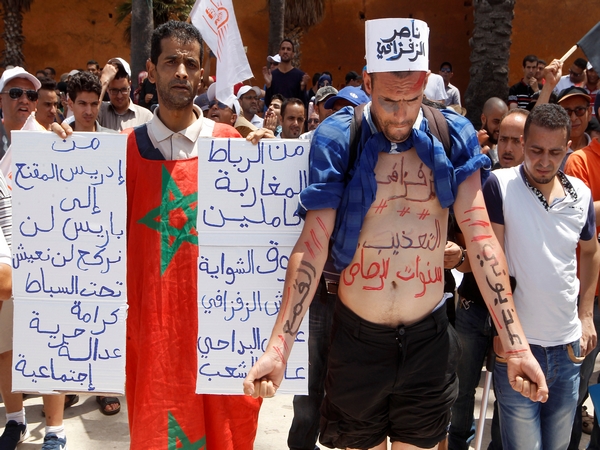 وشارك فى المسيرة كل من التنسيق الميدانى للمجازين المعطلين، والتنسيقات الخمس للأطر العليا المعطلة، والتنسيقية الوطنية لاسقاط خطة التقاعد، وتنسيقات الأطر العليا المجازة المعطلة، والتنسيقية الوطنية للأساتذة المتضررين، والتنسيقية الجهوية للمتضررين من الحركة الانتقالية 2017 لجهة درعة تافيلالت، والتنسيقية المحلية لضحايا الحركات الانتقالية، والمنتدى المغربى للمواطنة وحقوق الانسان، حسبما ذكرت وسائل إعلام مغربية.يذكر انه أعلنت منظمتا “هيومن رايتس و”العفو الدولية” فى بيان في وقت سابق أن قائد الاحتجاجات الشعبية فى شمال المغرب تعرض للضرب “بقسوة” وإلى إساءات لفظية من قبل عناصر من الشرطة المغربية خلال اعتقاله.اعتقل ناصر الزفزافى قائد “الحراك الشعبي” مع ناشطين آخرين فى 29 ماي فى قرية دوار لحرش على بعد حوالى 50 كلم من الحسيمة، أكبر مدينة فى منطقة الريف. يذكر انه كانت البلدة ذاتها الواقعة على بعد 15 كلم جنوب شرق الحسيمة، شهدت طيلة شهر رمضان الكريم وما تلاه اعمال عنف بين شرطيين ومتظاهرين.والحسيمة هي مركز الحراك الشعبي المطالب منذ اشهر بالتنمية في منطقة الريف. يذكر ايضا ان يومية الواشنطن بوست الأمريكية قالت في وقت سابق إن توقيف ناصر الزفزافي زعيم حراك الاحتجاجات الشعبية بالريف المغربي يمكن أن يكون بداية لصراع اجتماعي طويل الأمد في المغرب و أوضحت ذات اليومية في مقال تحليلي حول حركة المواطنة “الحراك” المستمرة منذ ستة أشهر بالحسيمة أن “المظاهرات قد تم التحكم فيها بشكل كبير إلا أن توقيف الزفزافي يمكن أن يشكل بداية لصراع اجتماعي طويل في البلاد”.