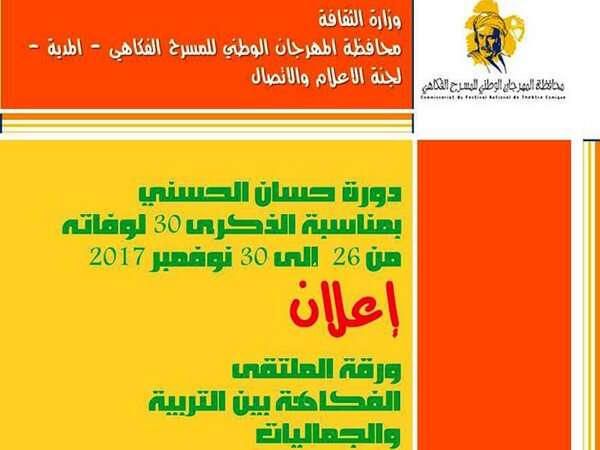 الجزائر- أعلنت إدارة المهرجان الوطني للمسرح الفكاهي بالجزائر فتحَ باب الترشح للمشاركة في فعاليات الدورة الحادية عشرة للمهرجان التي تقام في شهر نوفمبر المقبل، تخليداً للذكرى الثلاثين لوفاة حسن الحسني، أحد الوجوه البارزة في الحركة المسرحية الجزائرية.