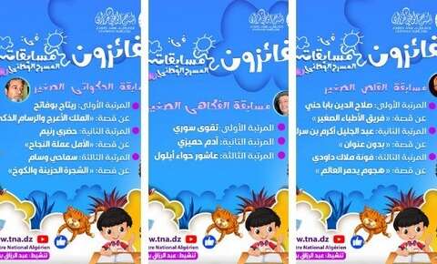 أعلن المسرح الوطني الجزائري “محي الدين بشطارزي” على صفحته على فايسبوك عن قائمة الفائزين بالمسابقات الثلاثة الموجهة للأطفال، والتي نظمها المسرح إحياء لذكرى رجال المسرح، أحسن عسوس وإدريس شقروني وعبد المالك بوساهل الذين وافتهم المنية في جويلية 2021.