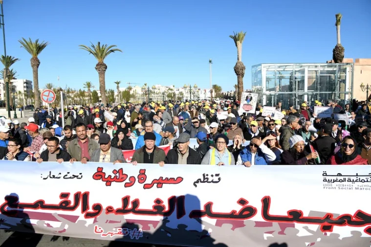 اللافتات المرفوعة والشعارات المدوية حملت رسائل قوية ضد الفساد والرشوة وضد محاولات الحكومة تكبيل الحريات النقابية عبر قوانين قمعية كان آخرها القانون التنظيمي للإضراب الذي وصفه المحتجون بأنه “جريمة في حق الطبقة العاملة”.