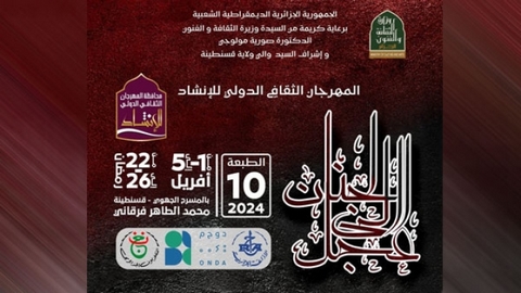 ستكون مدينة الجسور المعلقة، ابتداء من هذا الاثنين، على موعد مع الطبعة العاشرة للمهرجان الدولي للإنشاد التي تقام تحت شعار “عَجِّل إلى الجنان” يحضرها منشدون وأساتذة من الجزائر، وسوريا، وإيران، وأندونيسيا، وتركيا، وتونس، ومصر وشقيقة القلب فلسطين؛ حيث سيصدحون على ركح مسرح “محمد الطاهر الفرقاني”، في سهرات رمضانية يرتقب أن يتابعها جمهور كبير مثلما جرت العادة.