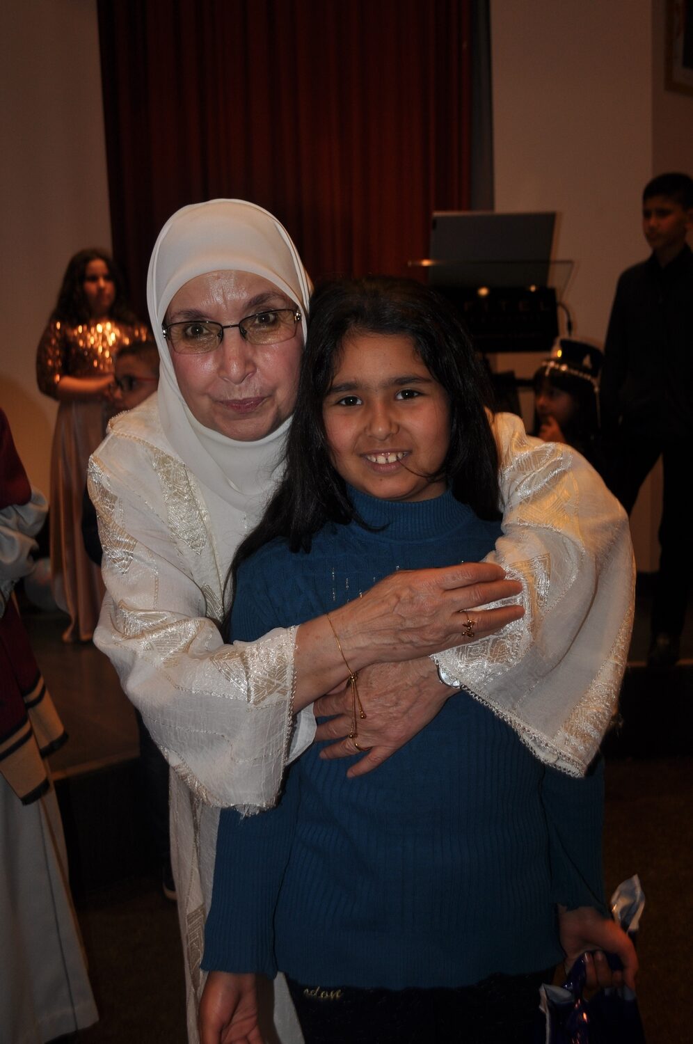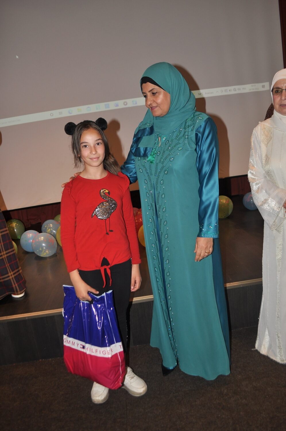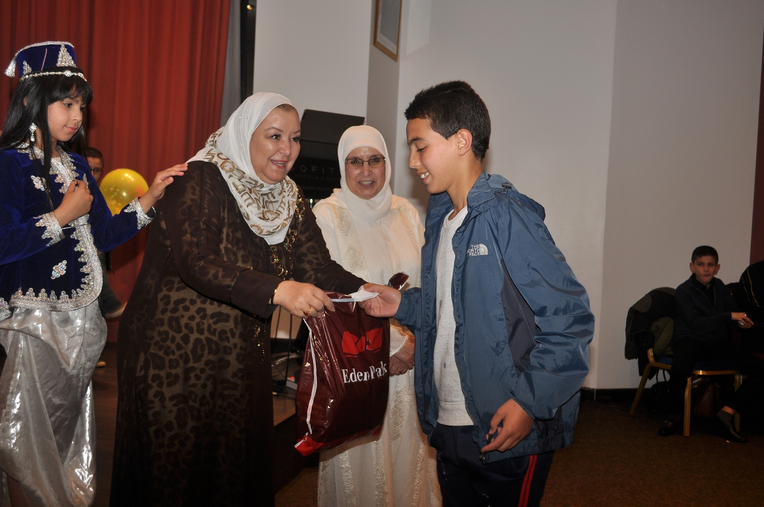 – الكثير من الأطفال وخلال تجولهم في القاعة وكلما التقوا منظمات الحفل والقائمات عليه يقومون بتقبيلهن وحتى عناقهن.
