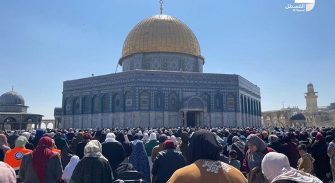 أحيا الآلاف من المقدسيين،الاثنين ذكرى ليلة الإسراء والمعراج، في المسجد الأقصى، الاثنين.
