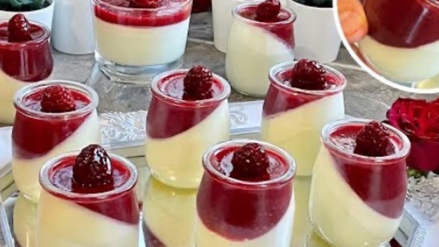 لتحضير الطبقة الثانية نقوم اولا بترطيب الجيلاتين بالماء ونقوم بالطحن الجيد للتوت (أو أي فاكهة متوفرة مثل الفراولة أو الخوخ المعلب، المشمش المعلب أو استعمال المطحون جاهزا) نضيف له السكر، نحرك جيدا ونسخنه جيدا ثم نضيف الجيلاتين المصفاة والمعصورة من الماء ونحرك جيدا حتى نتأكد من ذوبان وانحلال الجيلاتين. نترك المزيج يبرد قليلا بحرارة الغرفة عندما تصبح دافئة نقوم بنزع كؤوس البناكوتا من الصينية بعد التأكد من أنها تماسكت نفرغ صلصة التوت عليه وندخلها للثلاجة لتتماسك طبقة التوت.