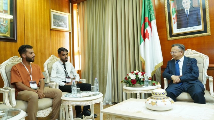 استقبل وزير التعليم العالي والبحث العلمي، كمال بداري، الطالبين عبد الجليل شنافي ولمين خالد، وهما طالبان مبتكران بالمدرسة العليا للأساتذة بالأغواط.