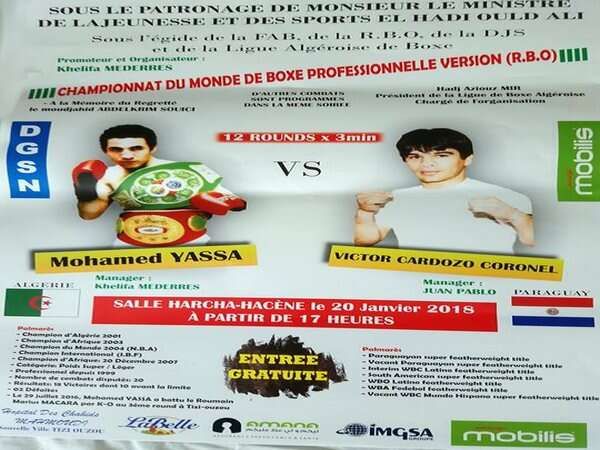 توج الملاكم الجزائري المحترف محمد ياسا بلقب بطولة العالم للملاكمة المحترفة للوزن فوق الخفيف بالنقاط، على حساب نظيره البراغواياني فيكتور كاردوزو كورونال، بقاعة حرشة حسان.