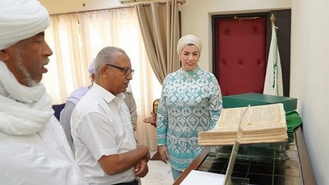 وكانت السيدة الوزيرة قد “وعدت في زيارتها لمكتبة وخزائن الزاوية البكرية بتمنطيط بأدرار خلال شهر نوفمبر من السنة الماضية بترميم المصحف”، وأعطت على إثر ذلك توجيهاتها لمصالح المكتبة الوطنية والمركز الوطني للمخطوطات للتكفل به وترميمه.