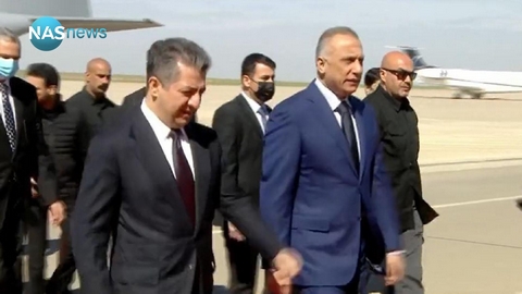 وكان في استقبال الكاظمي رئيس حكومة إقليم كردستان مسرور بارزاني وعدد من كبار مسؤولي الإقليم.