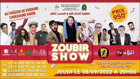 وقد أعلن القائمون على هذا العرض الفني على إعادة بعثه من جديد، حيث حدد تاريخ الثامن من سبتمبر الجاري لتقديم عرض “زوبير شو” على ركح مسرح “حسني شقرون” بوهران وبمشاركة العديد من الكوميديين، منهم البطل الرئيسي لهذا العرض زوبير بلحر وكذا محمد خساني، سفيان حماشة، لحلو وزربوط. وتعود مداخيل هذا العرض، للمتضررين من الحرائق الأخيرة التي عرفتها عدة ولايات من الشرق الجزائري. وقد وعد زوبير بلحر وكل المرافقين له من الفنانين الفكاهيين، بتقديم عرض يحمل الكثير من المفاجأت، خاصة وأنه خلال السنتين الأخيرتين تم تجميد كل العروض الفنية والمهرجانات المختلفة بسبب جائحة كورونا.